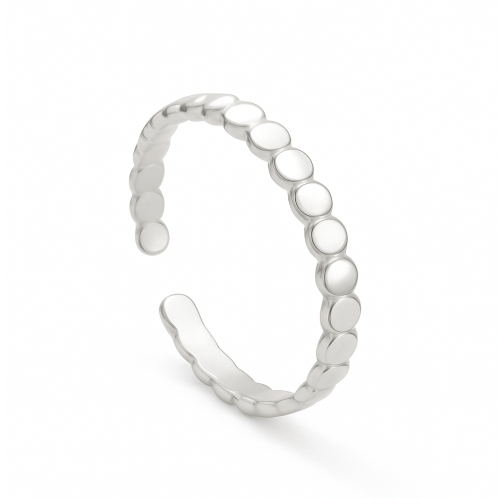 Com um design de bolinhas, que adiciona um toque divertido e charmoso, o anel Aura Esfera é ótimo para usar como anel de falange ou em mix. Produzido em aço inoxídavel, possui uma cor brilhante e tem grande durabilidade. Perfeito para utilizar no dia a dia, sozinho ou em conjunto com outros anéis.